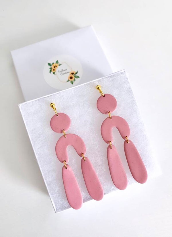 These pink statement earrings are a must! They have a boho style to them. They are stylish, fun, and can be worn with almost any outfit! Made of polymer clay. Lightweight and comfortable. These earrings are the perfect pop color that you need!