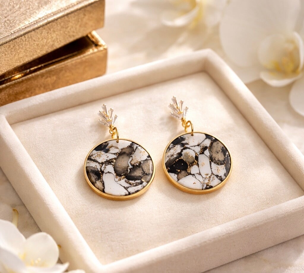Classy Black, White, & Gold Marble Earrings