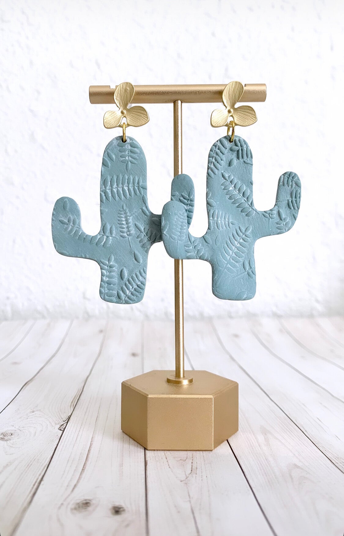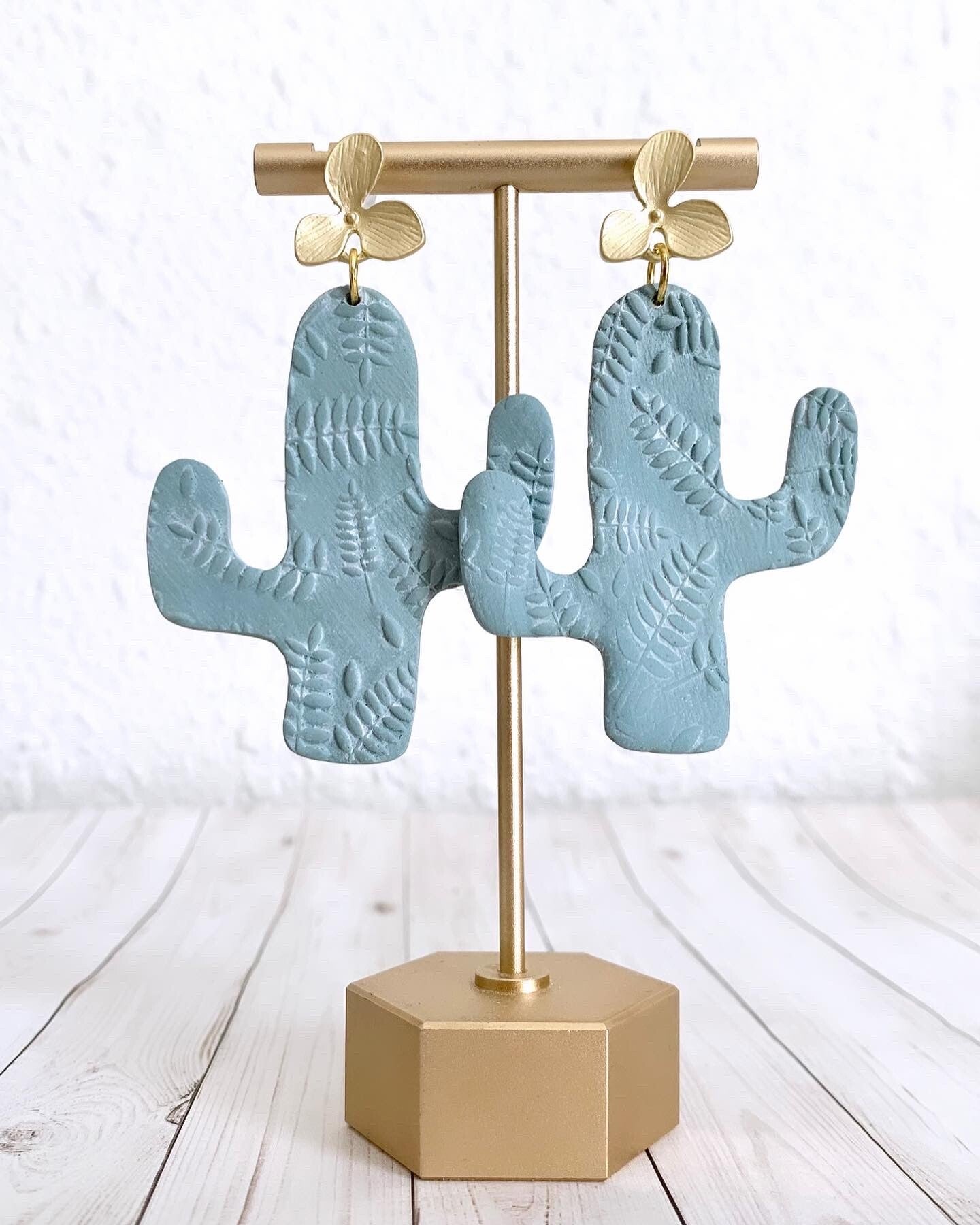 Check out these cuties! They are made of polymer clay and are very light. I used a new technique: The goal was to give it as whitewashed look. I gave it a leaf texture. Then I added white acrylic paint, allowed it to dry a bit, and then clean the excess paint. Leaving it with a subtle white, making the leaf texture pop a bit more. Available in beige and blue.