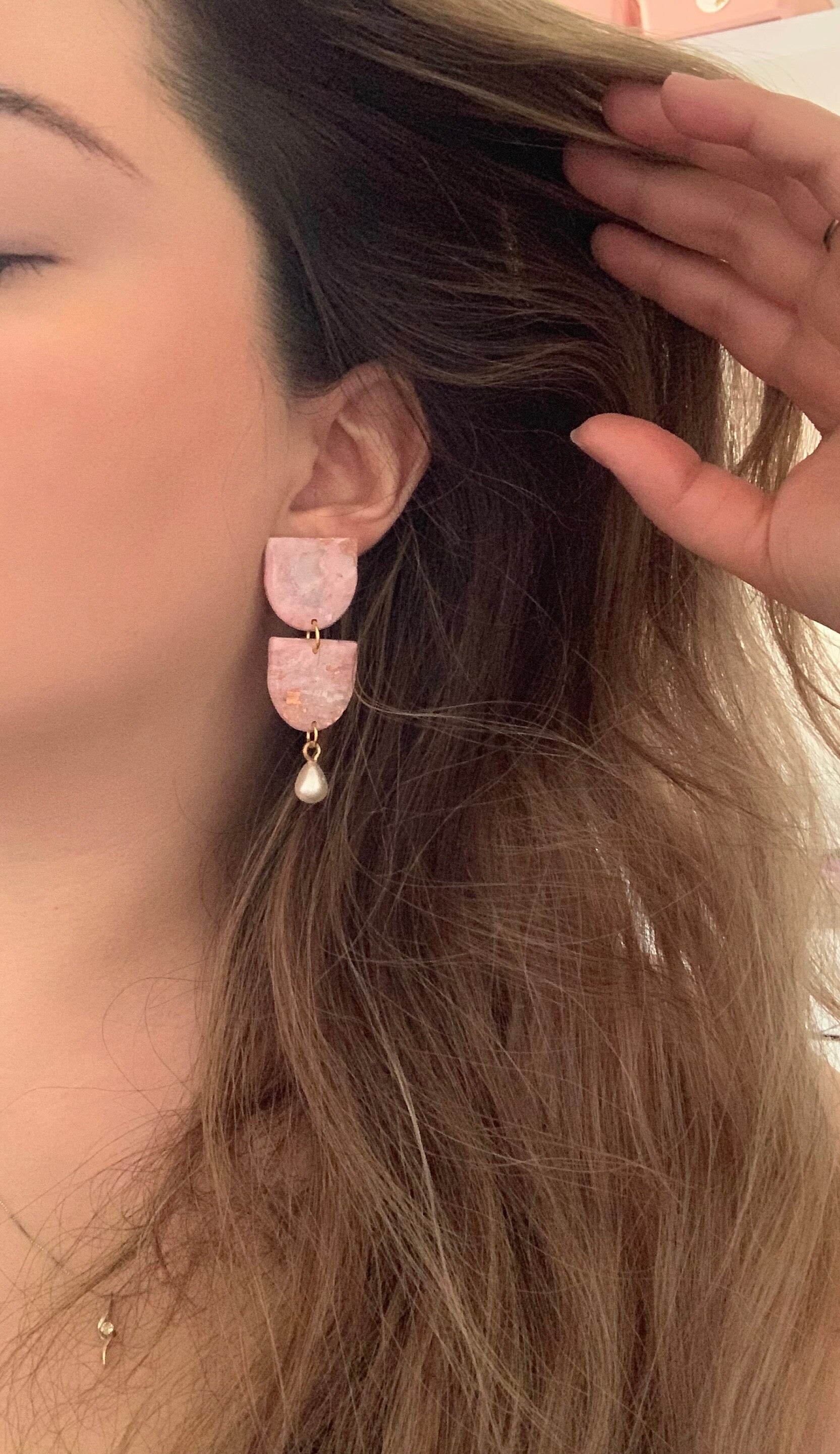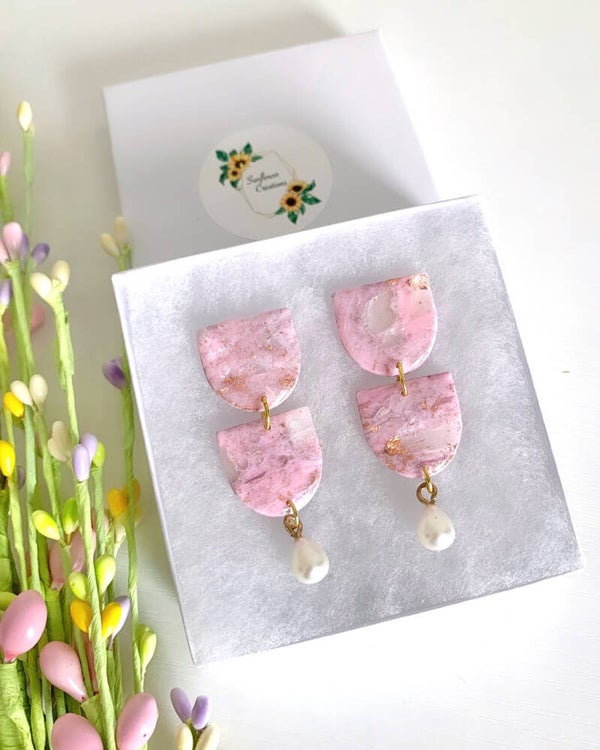 Pink Clay Earrings With Pearls