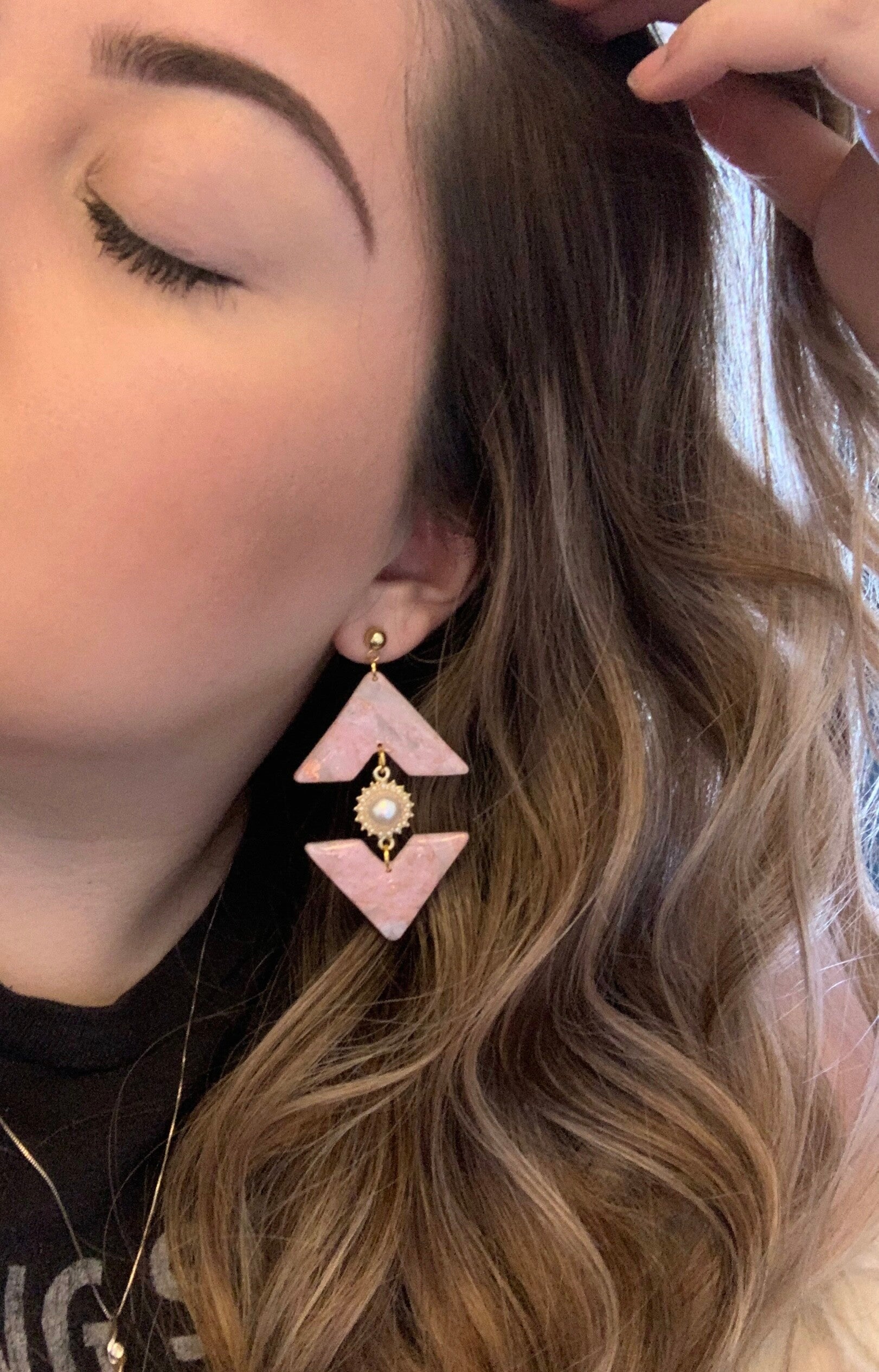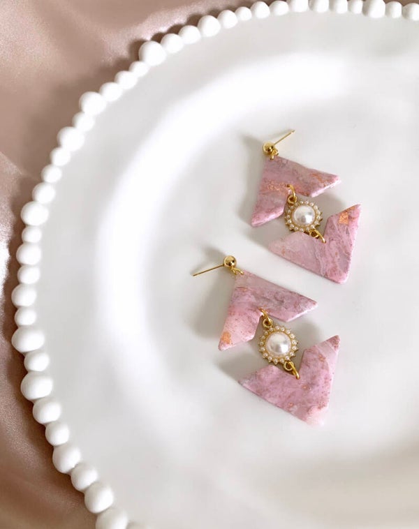 These beauties are handmade and made of polymer clay. They have a beautiful glossy layer of epoxy resin and hypoallergenic posts. These earrings are also comfortable and light!They are edgy, girly, and classy all at once!