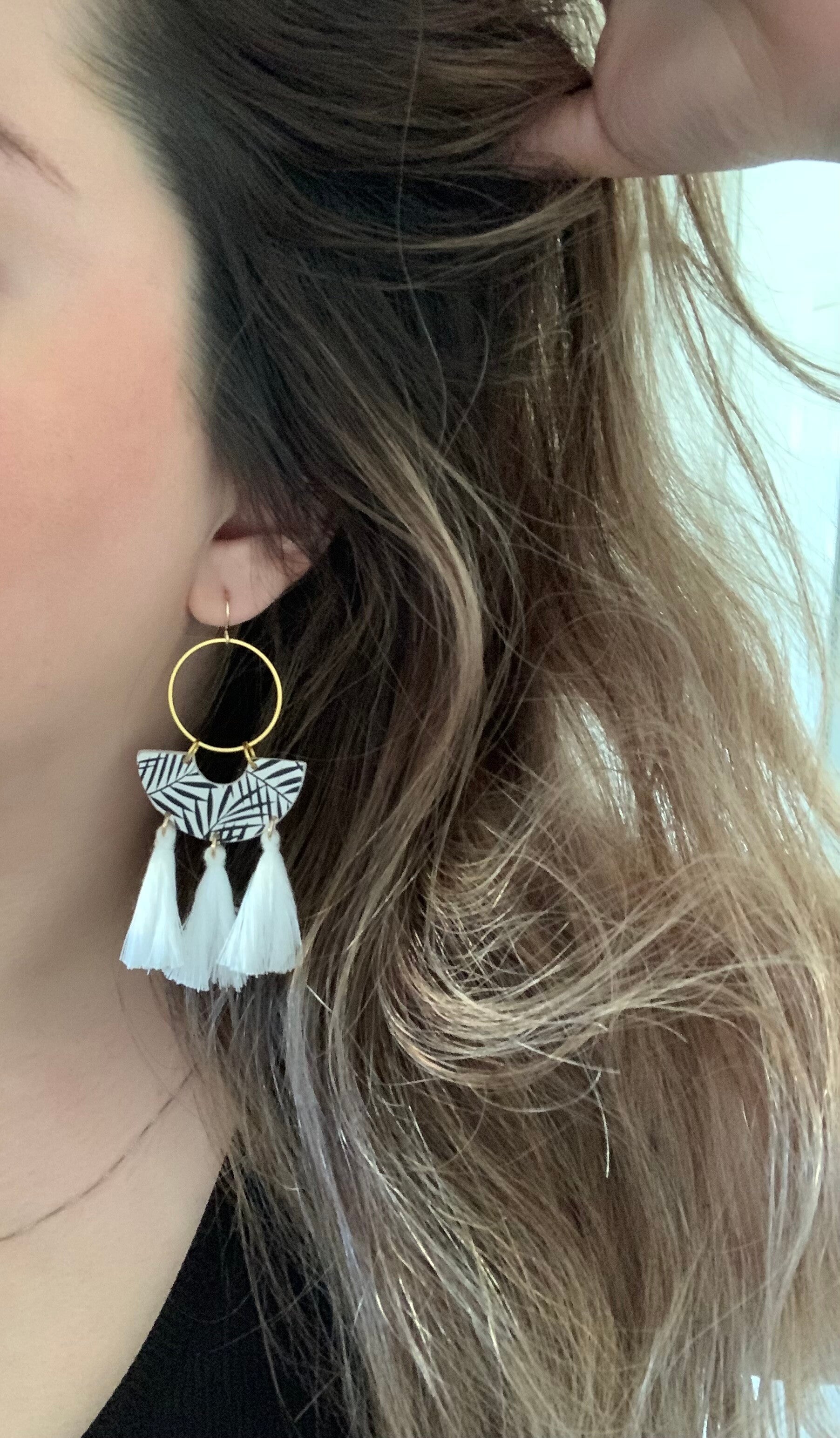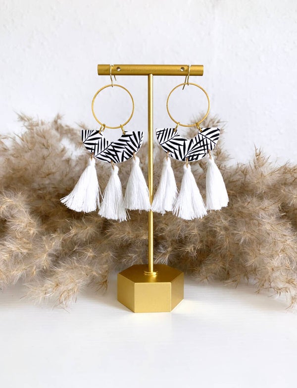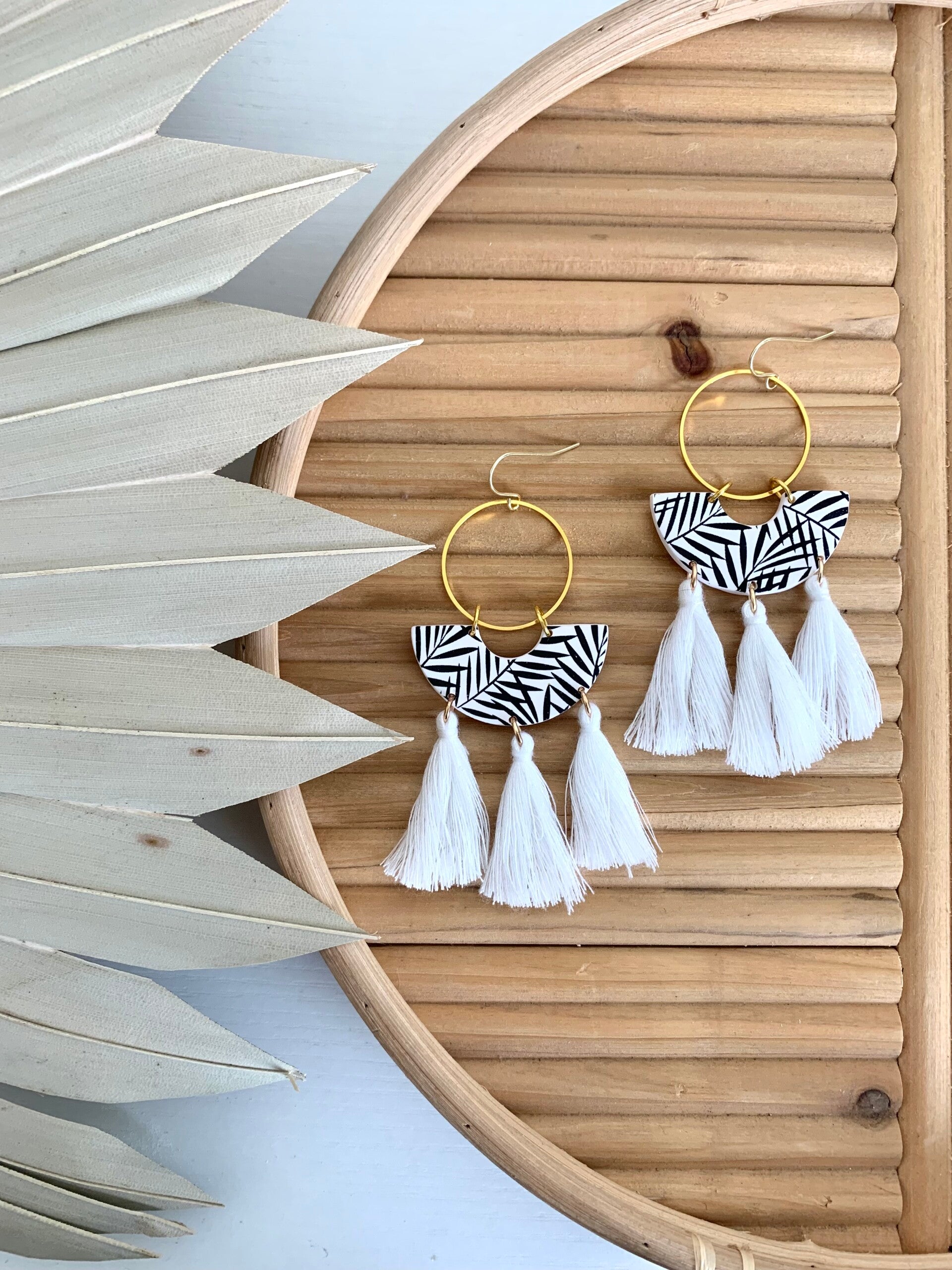 They scream: tropical beach vacation! These earrings are handcrafted and made of polymer clay. The tropical palms are made with black acrylic paint. I love how extra they are with the white tassels but I will also give you the option without tassels (see image). They might look heavy but they are super light. These earrings are perfect for your summer vacation, they will match with several outfits!