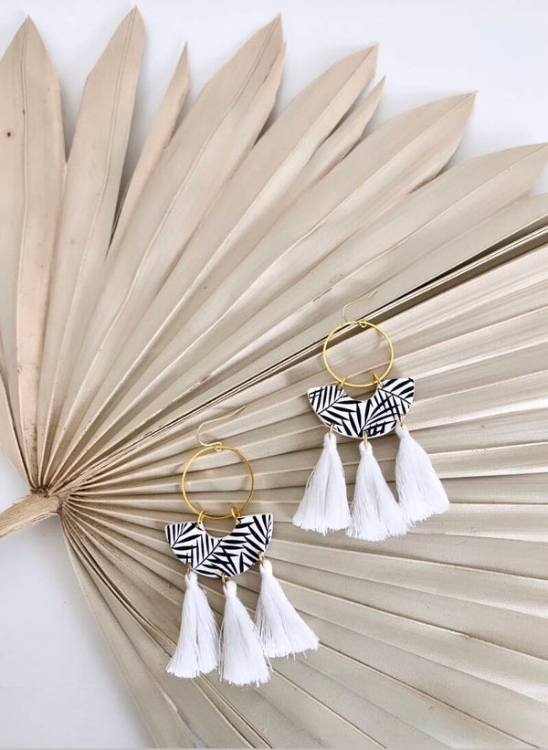 White & Black Tropical Palm Earrings